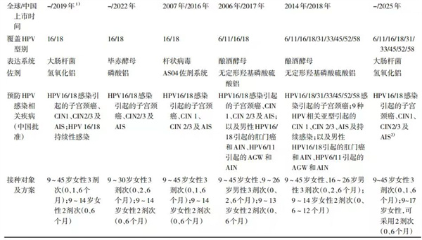 HPV疫苗是预防HPV感染及相关疾病有效且安全的方法,能有效减少子宫颈癌及癌前病变的发生,已纳入国家免疫规划。目前,我国HPV疫苗主要有以下几种: