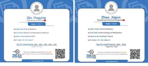 医院秦莹莹教授、赵家军教授、范修德副研究员入选“全球前2%顶尖科学家”榜单