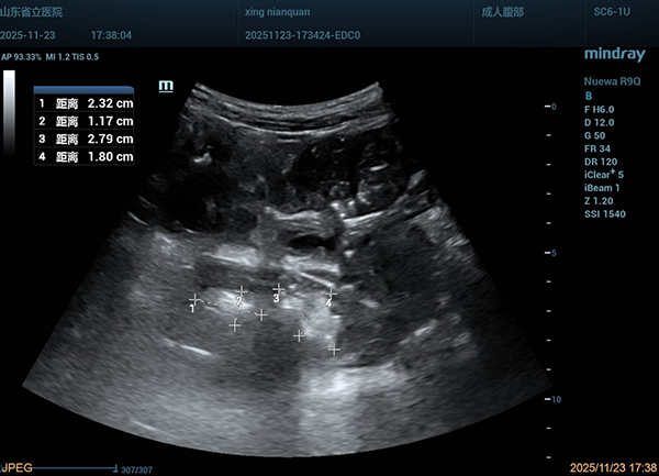 秋冬时节,山东地区盛产大量山楂、柿子,导致胃结石患者数量显著增长。胃内结石可通过口服可乐、小苏打,或者采用胃镜下碎石的方法来消除。然而,一旦结石进入小肠并导致严重堵塞,引发肠梗阻,治疗就会变得异常棘手。此次治疗,展现了胃肠超声在小肠结石保守治疗中的独特价值,为部分复杂小肠结石患者提供安全、有效的非手术解决方案,充分体现了多学科协作与微创诊疗理念的价值,也为老年术后患者的治疗提供了新的参考。