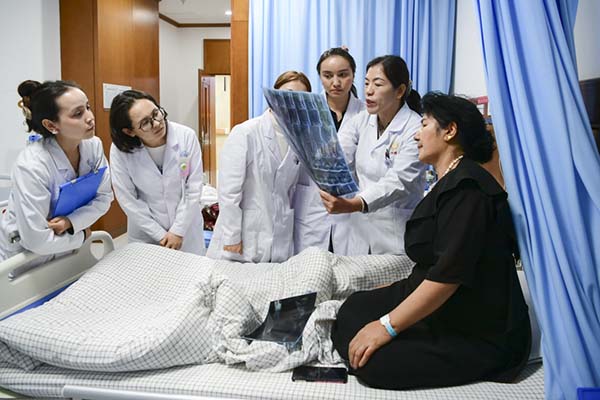 王盛春十分注重专业人才的培养,她提出了专家带骨干、师傅带徒弟的“双促进”模式,取得良好效果:科室人才梯队合理,老中青阶梯有序,三级医师查房顺畅,一批中医专业的年轻少数民族医生已经可以独当一面。
