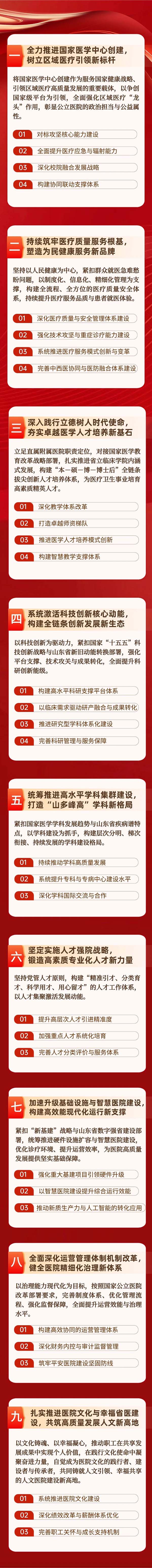随着中国共产党山东第一医科大学附属省立医院(山东省立医院)第一次代表大会胜利召开,医院迈向高质量新征程的号角已经全面吹响!大会报告锚定“1169”发展战略,清晰擘画了未来五年以“九大战略任务”为核心的发展蓝图。