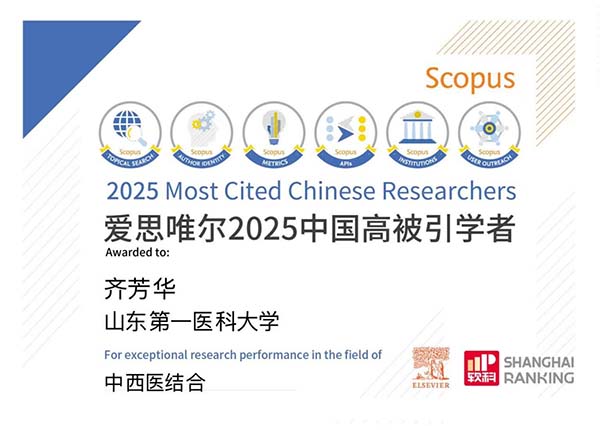 1月30日,爱思唯尔(Elsevier)正式发布2025“中国高被引学者” (Highly Cited Chinese Researchers)榜单,山东第一医科大学附属省立医院(山东省立医院)中医科副主任医师齐芳华连续6年入选中西医结合学科榜单,为该年度山东省中医药领域唯一入选者。