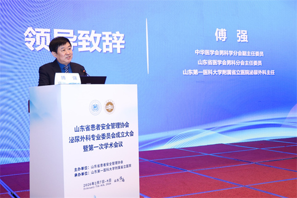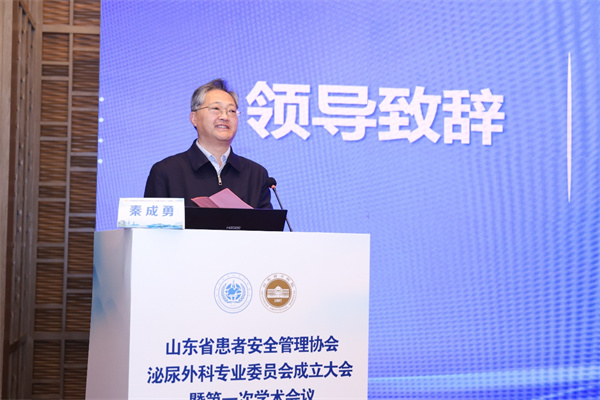 2月8日,由山东省患者安全管理协会主办,山东第一医科大学附属省立医院(山东省立医院)泌尿外科承办的山东省患者安全管理协会泌尿外科专业委员会成立大会暨第一次学术会议在济南举行。山东省卫健委原党组成员、副主任、一级巡视员、山东省患者安全管理协会公益咨询专家委员会主任秦成勇,省立医院党委委员、省立临床学院副院长朱强,中华医学会男科学分会副主任委员、山东省医学会男科学分会主任委员、山东省泌尿外科质控中心主任、省立医院泌尿外科主任傅强,山东省医学会泌尿外科分会主任委员史本康参加开幕式并致辞。国内及省内各级医疗机构泌尿外科领域的专家学者、护理骨干及患者安全管理相关从业者参会,共话泌尿外科患者安全管理新发展。