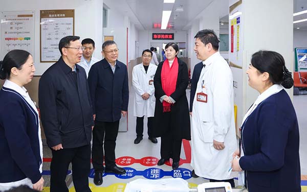 在急救中心,吴向东书记实地察看了就诊环境及抢救室运转情况。他指出,急诊是医院的“前哨”,是急危重症救治的第一线,春节期间任务尤为繁重。希望大家继续保持昂扬斗志,持续优化流程、提升服务效率,确保绿色通道畅通无阻,为患者提供及时、高效的医疗救治服务。在重症医学科,吴向东书记与值班医护人员深入交谈,详细了解春节期间危重症患者的救治情况。他强调,ICU是生命救治的“最后一道防线”,患者病情重、变化快,责任重于泰山。希望大家始终坚持以人民健康为中心,密切监测病情,全力以赴做好救治工作,同时也要注意保重身体,确保自身健康安全。