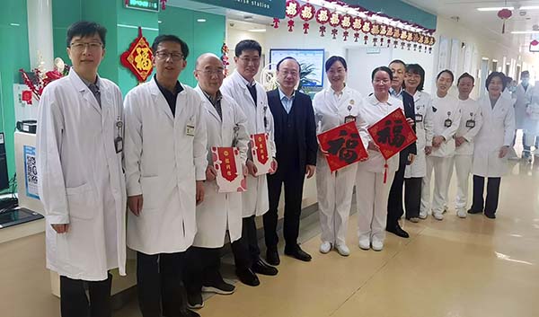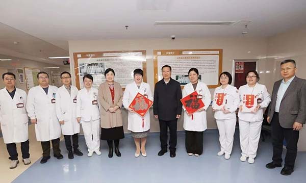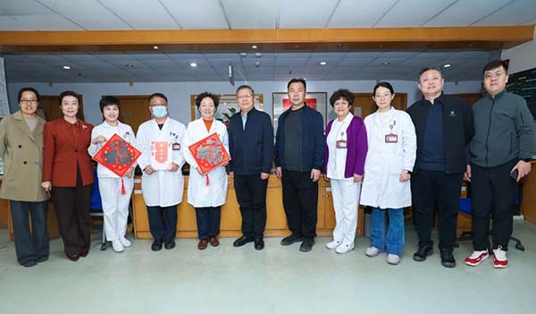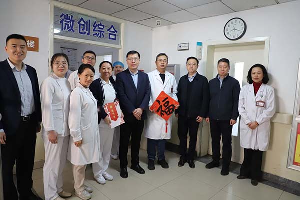 骏马启新程,温情暖一线。2月13日-14日,在农历马年新春佳节即将来临之际,校(院)党委副书记、省立医院党委书记吴向东,党委副书记、院长秦莹莹等院领导班子成员带领各党总支书记、职能部门负责人,走访慰问了奋战在医院一线岗位上的干部职工,向大家致以新春的美好祝福和诚挚的节日问候。