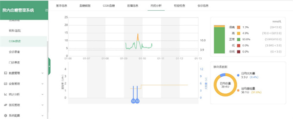 2021年10月,学科牵头在开展全院血糖管理项目,上线了院内血糖管理系统,借助信息化工具,从而实现全院血糖管理的智能化、专业化和标准化。目前除小儿科以外的全部临床科室均纳入院内血糖管理范畴,相关科室上线血糖PDA,实现了BGM血糖数据自动上传。此外系统还可对接多种品牌血糖仪,如强生、罗氏、爱森斯和硅基CGM血糖仪,实现了BGM、CGM数据、用药医嘱和关键检验信息在一个系统里查看、关联分析,提高了医生的信息获取效率。该系统也是国内第一家实现了BGM和CGM关联分析的系统,已申请相关发明专利。