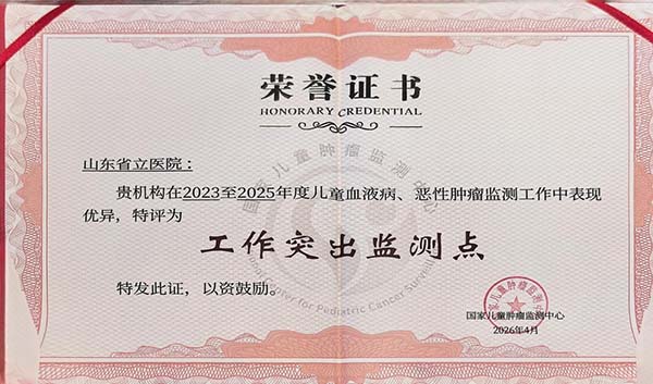 儿童血液病、恶性肿瘤防治事关儿童健康与民生保障大局。规范开展病例监测、精准汇总医疗数据、深化大数据分析应用,是提升全国儿童肿瘤规范化诊疗水平、优化救治体系、保障少年儿童生命健康的重要基石。作为国家卫健委首批儿童血液肿瘤救治定点单位、山东省儿童白血病与实体肿瘤救治牵头单位,省立医院小儿血液内分泌科长期深耕儿童血液肿瘤领域,聚焦白血病、淋巴瘤、儿童实体肿瘤等儿童疑难重症的规范化诊疗、多学科协作、科研创新与健康管理,强化学术交流与数据共建共享,不断完善儿童重大疾病全周期诊疗服务体系。医院高度重视疾病监测管理,依托雄厚学科实力、标准化诊疗流程及严格质控体系,严格落实国家监测工作部署,高质量完成病例上报、数据审核、信息汇总、长期随访等全流程工作,严控数据精准度,优化监测流程,为全国儿童肿瘤流调研究、诊疗方案优化、医疗资源统筹,提供了高质量区域数据样本与实践经验,有效助力儿童肿瘤诊疗向数字化、精准化转型。