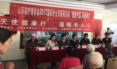 5月12日是第106个国际护士节,为弘扬与传承南丁格尔精神,展现医务人员风采,我院延伸护理学术组联合山东省护理学会、天桥区堤口路街道办事处,走进堤口路街道堤口庄社区君悦世家养老公寓进行义诊服务活动,为堤口路街道“暖心工程”受助老人和社区养老院送去温暖。与会人员有山东省护理学会理事长刘玉芹、山东省护理学会秘书长郭明兴、我院护理部主任李振香、堤口路街道人大工作办公室主任李连臣、堤口路街道纪工委书记刘莹、我院医护专家团队。