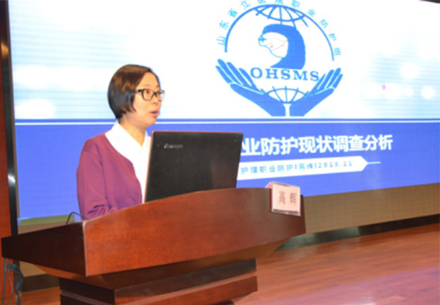 随后,山东省立医院感染管理办公室徐华老师做《职业防护相关知识培训》讲座。在医疗护理职业防护的焦点、难点、热点问题上为大家进行系统的分析,带来了国际最先进、最前沿的职业防护理念。