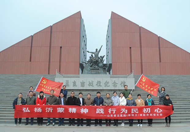 为传承和弘扬新时代沂蒙精神,增强基层党支部的凝聚力、战斗力和创造力,2018年12月1日-2日,我院外科党总支书记李承洋、神经外科党支部书记王国栋带领支部党员和医护专家团赴孟良崮战役纪念馆和东蒙镇卫生院开展了“弘扬沂蒙精神,践行为民初心”的主题党日活动和党员义诊活动。