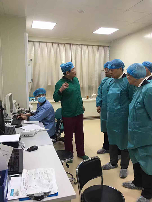 交流会后,肖伟陪同外宾参观了门诊、远程医学中心和肿瘤介入手术。