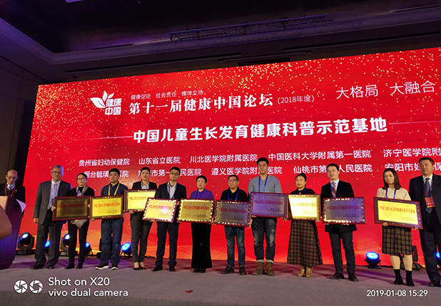 1月8日,第十一届健康中国论坛在北京举行,中国儿童健康传播研究中心在本届论坛宣布正式成立,我院东院儿内科荣获首批“中国儿童生长发育健康科普示范基地”荣誉称号。据悉,本届论坛仅向20家医院授予此称号。