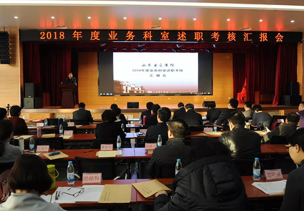 1月19~20日,我院在妇儿综合楼6楼报告厅召开了2018年度业务科室主任述职考核会议。在家院领导、职能部门负责人、党总支书记以及参与述职考核的科主任、副主任、大科护士长等共计125人参加了本次会议。会议分别由党委委员、副院长王荣、孙志坚、李乐平主持。医院67名业务科室主任分别从科室取得的成绩、2019年工作计划以及对医院发展建议等三个方面,进行了述职汇报。汇报结束后,在家院领导、职能部门负责人、党总支书记,以及参加述职的业务科主任、大科护士长对汇报人进行考核测评打分。