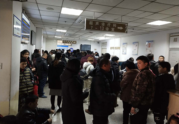 春节过后,我院门诊三楼超声诊疗科,就诊患者一路攀升,预约分诊处、候诊大厅、超声诊室外挤满了前来就诊的患者。