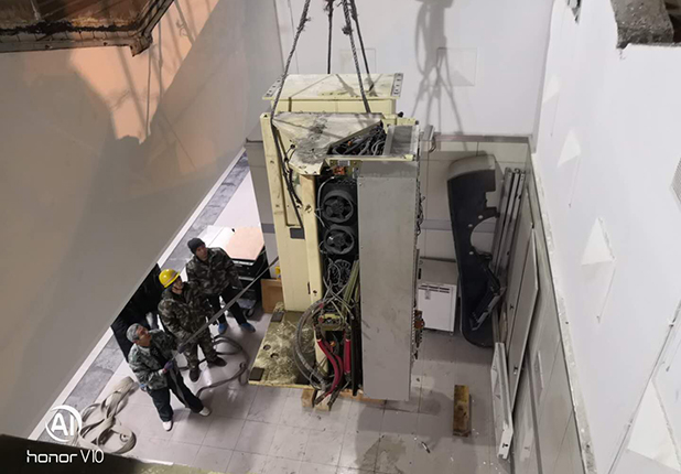 近日,在肿瘤中心、医工办、总务部、保卫部等多部门的共同努力下,我院新进医用直线加速器到货吊装工作于顺利完成。