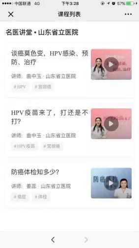 目前我院分别针对大众最关心的“防癌体检”、“HPV感染与预防”、“HPV疫苗”等热门话题,推出系列视频讲座,由妇科曲中玉、肿瘤科姜蕊专家进行深入浅出的讲解,满足大众健康需求。我院将以“权威解读、公益惠民”为宗旨,坚持"贴近实际、贴近生活、贴近群众"的原则,继续在内容的广度、深度和关联度上努力,推出更多优质视频讲座,为广大群众的身体健康保驾护航。