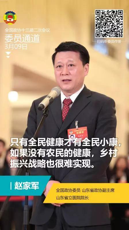 【两会聚焦】全国政协委员、山东省立医院院长赵家军谈“乡村医疗卫生”建设:只有农民健康,乡村才能振兴