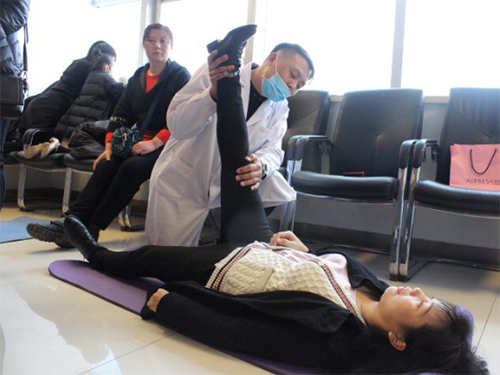 活动现场,康复医学科的医务人员们耐心接诊每一位职工,为大家评估疾病,讲解后期的自我康复、异常姿势的调整、核心肌力的训练。为每一位急慢性疼痛的患者进行现场评估诊疗,通过手法松解牵伸,深层肌肉放松,针灸针刺,耳穴贴敷,肌内效贴肌肉稳定等技术,解决了女性长期疼痛问题。