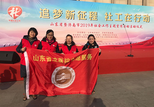 3月19日上午,山东省暨济南市2019年社会工作主题宣传活动在济南市世茂·动感广场拉开帷幕。省委组织部、省委宣传部、省卫生健康委等省直部门与济南市政府及相关部门有关领导出席了启动仪式。我院医务社工办团队参加了本次活动。