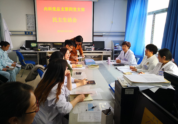 为认真学习贯彻落实两会精神和习近平新时代中国特色社会主义思想,近日,我院内科党总支第四党支部召开民主生活会,布置今年支部工作重点,并完成民主评议党员工作。支部书记姜淑娟同志主持会议,支部20余名党员同志参加了会议。